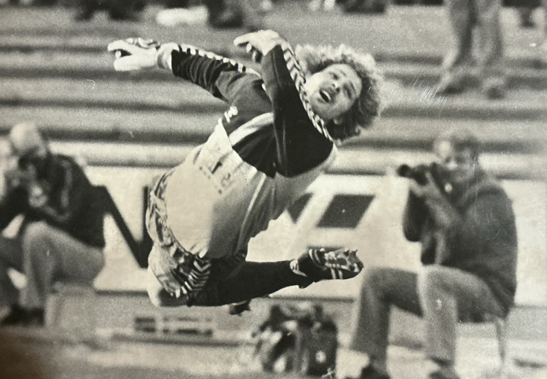 Baggrund om topfotoet: Da B.93 spillede i Næstved 12. juni 1983 blev målmanden Bo Skovbjerg skadet i 1. halvleg. Han blev erstattet af markspilleren Find Juhl Jensen. I pausen skiftede Find Juhl handsker med Anders Levinsen. B.93 tabte kampen 0-6. Dengang måtte man kun have to udskiftningsspillere, og for det meste var det to markspillere, og så håbede klubberne, at der ikke skete noget med målmanden. Topfotoet af en flyvende Jean Jensen er fra den efterfølgende kamp 16. juni 1983 hjemme på Østerbro Stadion mod Hvidovre IF er fra en artikel i Politiken med overskriften “Reserven var point værd”, reserven var selvfølgelig Jean. Artiklen er skrevet af journalisten Niels Rasmussen og Morten Langkilde er fotografen. Kampen endte 0-0.